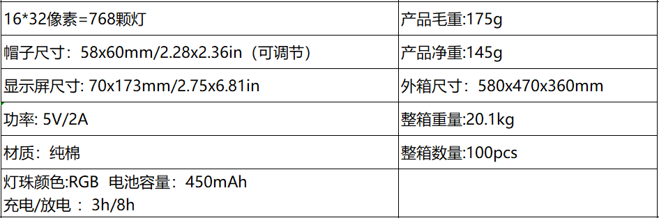 本产品是深圳市好彩阳科技有限公司自主研发生产的一款产品-LED 显示屏帽子。采用高质量纯棉+FPCB。使用APP操作 支持文字 DIY 涂鸦 动画 图片 灯效 时钟等功能。电池供电,续航时间长,使用方便。尺寸和重量满足跨境物流标准,大大节约了运输和配送成本。非常适合聚会派对 节日活动 户外露营 夜跑 等场所。